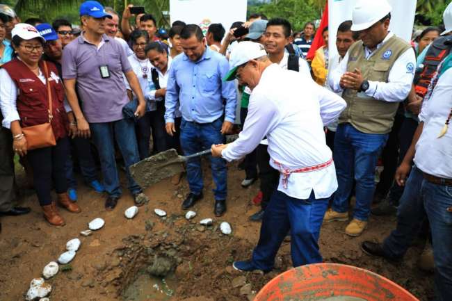 Porque no es posible el éxito de la revolución productiva sin carreteras ni puentes para que los emprendedores puedan sacar sus productos, el Gobierno Regional de San Martín colocó la primera piedra de la carretera Chazuta – Curiyacu, la misma que tendrá una extensión de 19.78 kilómetros y doce puentes