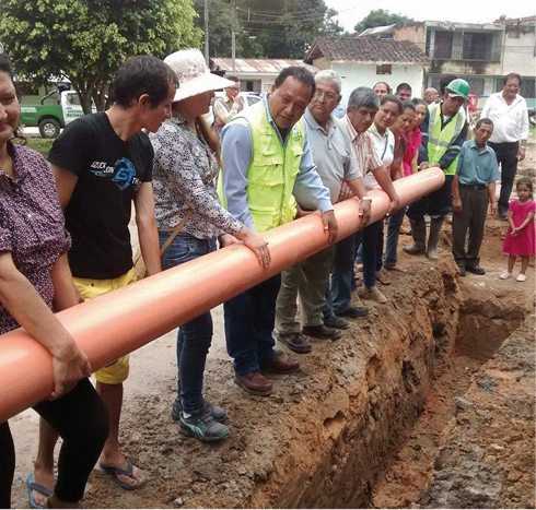 “Ya no vamos a esperar más tiempo para ver el desarrollo de nuestra ciudad”, manifestó el Alcalde Provincial de Moyobamba, Ing. Oswaldo Jiménez Salas, tras colocar simbólicamente, junto a vecinos del barrio Belén, el primer tubo de la obra «Mejoramiento de la red de alcantarillado y agua potable del jirón Damian Nájar cuadra 3, Moyobamba – San Martín”.