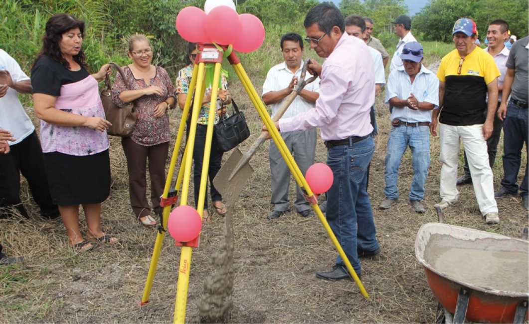 La ceremonia de colocación de la primera piedra, estuvo encabezado por el gerente general del Proyecto Alto Mayo, Ing. Wilson Becerra Pérez, la alcaldesa de la provincia de Rioja Mercedes Torres Chávez, y representantes del Frente de Defensa por los Intereses de Rioja.