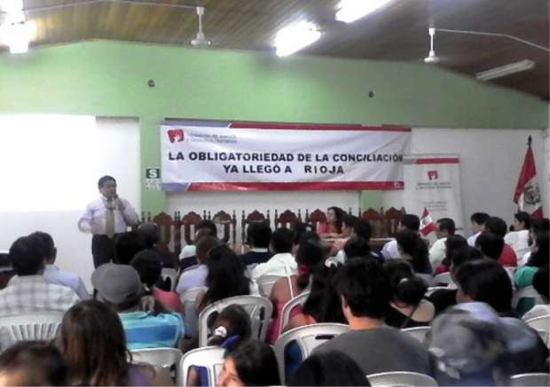 En el Auditorio de la Municipalidad Provincial de Rioja se dio inicio al ciclo de conferencias en materia de conciliación extrajudicial, dirigido a profesionales y público en general interesado en esta nueva modalidad de administrar justicia.