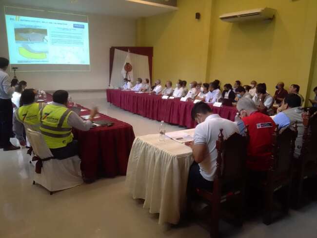 Reunión en el Colegio de Ingenieros de Tarapoto, presente el vice ministro de transportes y comunicaciones, el de decano del colegio de Ingenieros, la Congresista Karol Paredes, representante de las divertidas organizaciones de la región para abordar la problemática de las vías de comunicación en San Martín. Presentes en la cita además IRSA Norte, Ositran, la dirección regional de Transportes y Comunicaciones. Noticia en desarrollo.