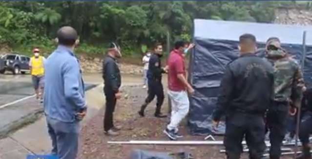 Las autoridades municipales, junto a la gerente de desarrollo Social del GORESAM Lic. Milagros Sánchez Vargas y el Gerente General del Proyecto Especial Alto Mayo Ing. Dany Ríos Sajamí , estuvieron en el lugar de los trabajos de acondicionamiento e instalación de la garita que cuenta con la presencia de efectivos de Policía Nacional y personal del Ejecito.