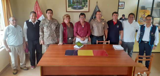 Reunión contó con la presencia de las representantes, del sector salud, agricultura, Policía Nacional, Oficina de Registro Militar, Subprefectura Provincial, consejero regional Econ. Kemsper Valera, bajo la conducción del burgomaestre provincial en calidad de presidente de la plataforma de defensa civil.