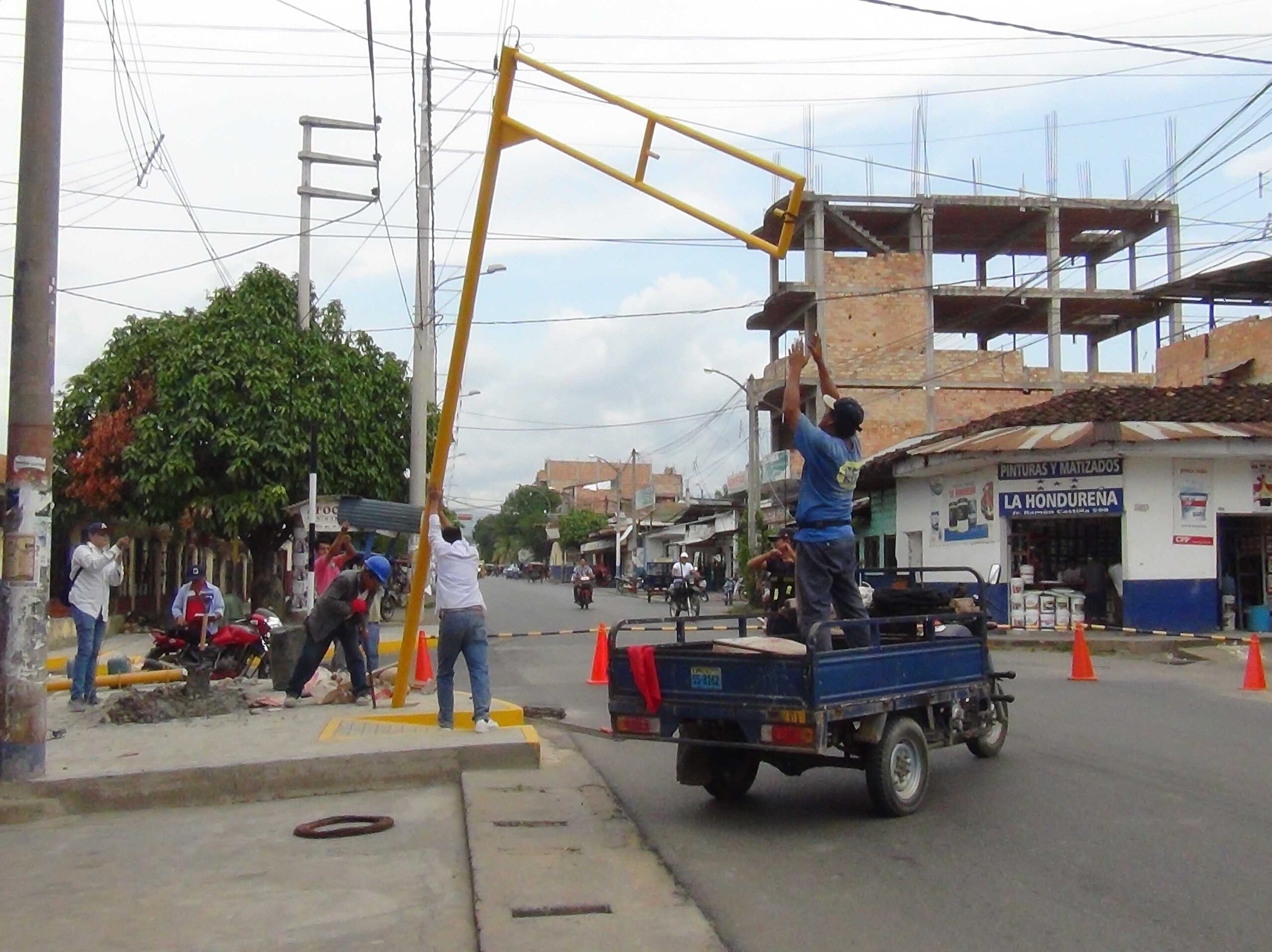 La subgerencia de tránsito de la Municipalidad Provincial de San Martín, instaló la estructura para la colocación de dos semáforos entre las intersecciones del jirón Orellana con Ramón Castilla.