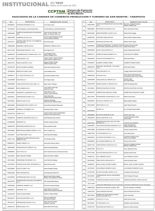 Institucional: Asociados de la Camara de Comercio Produccion y Turismo de San Martin – Tarapoto
