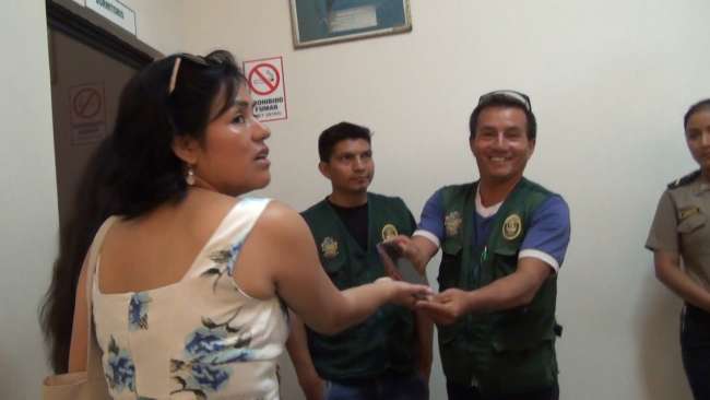 El brigadier Marco Dios Alvear, comandante de guardia de la Comisaría de Tarapoto junto a los dos motaxistas de la junta vecinal motorizada fue el encargado de entregar el teléfono celular a la adolescente, mientras que su profesora agradeció la honradez de los jóvenes. “No pensé que hoy en día existan personas honradas, les agradecemos mucho por esta noche acción y no llevamos una buena impresión de Tarapoto” puntualizó la docente.