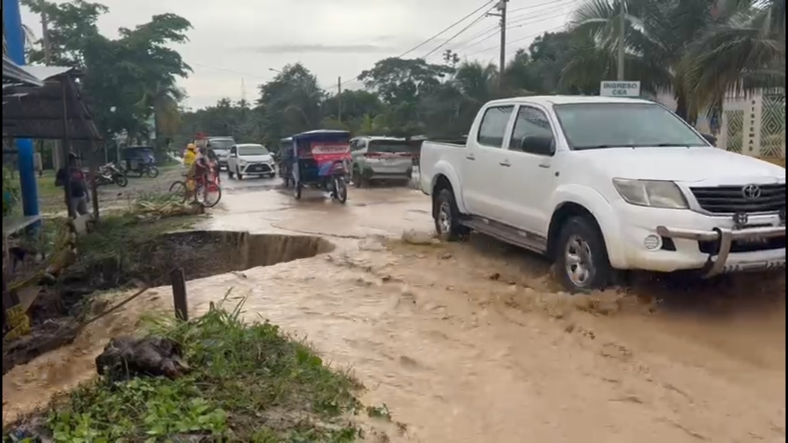 Uno de los puntos más críticos se registró en la carretera Fernando Belaúnde Terry, cerca del distrito de Cacatachi, donde una alcantarilla construida con dimensiones reducidas colapsó, provocando el desborde de aguas pluviales. Como consecuencia, parte de la plataforma de la pista se derrumbó, dificultando el tránsito vehicular.