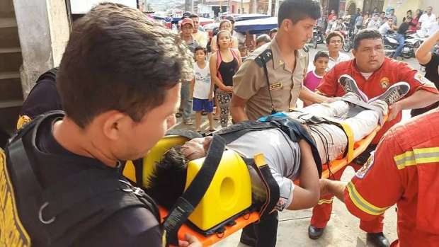 Ante la gravedad de su estado, los bomberos de la Compañía 071 de Tarapoto llegaron hasta la cuadra dos del jirón Sucre en el barrio Partido Alto, donde antes de ser trasladado a un establecimiento de Salud le brindaron los primeros auxilios, los vecinos se apostaron en el frontis sin saber lo que ocurría.