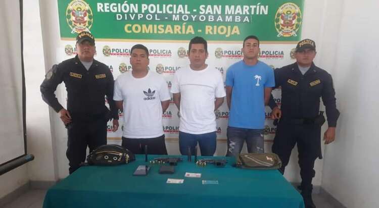 Cuando deambulaban por inmediaciones del mercado Miguel Grau, ubicado en el jirón Angaiza cuadra 11 en la ciudad de Rioja, fueron atrapados tres sujetos que se encontraban armados y en actitud sospechosa, cuando efectivos de la comisaría realizaban un patrullaje de rutina.