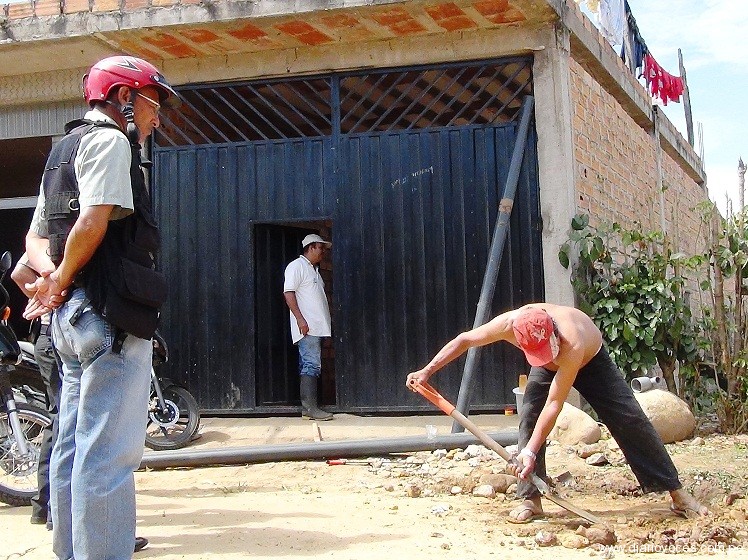 Trabajadores de la Municipalidad Distrital de Morales encontraron infraganti a un morador del sector La Ramada, realizando de manera ilegal excavaciones en una vía principal para colocar tuberías de desagüe y desfogar sus aguas residuales en una alcantarilla que iba afectar al vecindario.