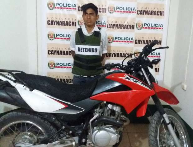 El detenido fue identificado como Eduar Delgado Guerrero de 22 años de edad, según su Documento Nacional de Identidad es natural de la provincia de Moyobamba, tras su intervención lograron recuperar la motocicleta que fue hurtada el jueves en la noche en el barrio Rafael Soria Vargas del distrito de Barranquita.