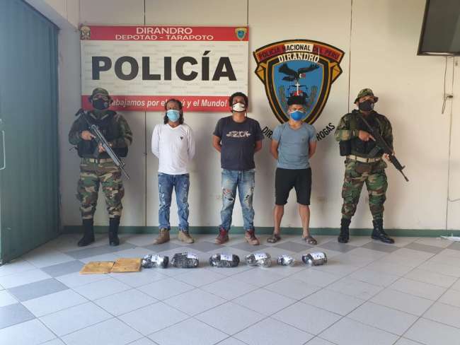 Los intervenidos fueron identificados como Aureliano Jerson Horna Mera de 22 años de edad, Jhon Kennedy Tapullima Chiquipiondo (27) y José Martínez Chuquiruna (45). Al momento que fueron descubiertos por los policías Antidrogas, guardaron silencio y pese a las evidencias uno de ellos negó estar involucrados en el ilegal negocio de estupefacientes.