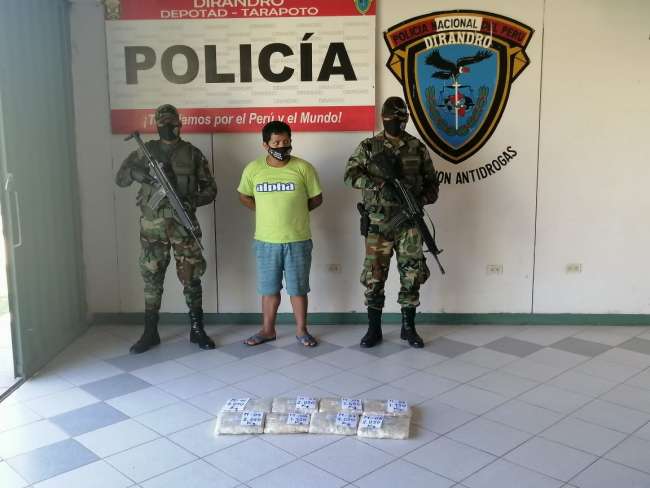 La intervención se produjo en el kilómetro 21 de la carretera Tarapoto -Yurimaguas, Guevara Muñoz fue conducido a la sede del Departamento de Operaciones Tácticas de Antidrogas con sede en el distrito de Morales, con la finalidad de iniciar las investigaciones y determinar la procedencia de los 15 kilos de PBC. (Hugo Anteparra)