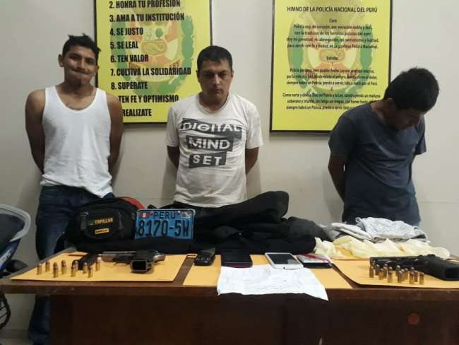 Los intervenidos fueron identificados como Carlos Saravia Maíz de 31 años de edad, James John Poves Díaz (40) y Manuel López Ríos (42), quienes fueron ubicados entre la intersección del pasaje Pajatén y el jirón Ramón Castilla de Tarapoto. Entre sus pertenencias encontraron dos pistolas, 25 municiones, guantes quirúrgicos, pasamontañas y un plano del centro comercial Don Tuco.