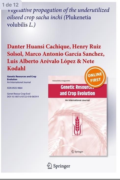 A esto se suma el empeño de investigadores del Instituto de Investigaciones de la Amazonía Peruana (IIAP) en la región San Martín por difundir el resultado de las investigaciones en revistas científicas de nivel internacional, y es por ello que recientemente se ha publicado el artículo titulado: Vegetative propagation of the underutilized oilseed crop sacha inchi (Plukenetia volubilis L.) en la revista Genetic Resources and Crop Evolution An International Journal, espacio donde los científicos más respetados dan a conocer el resultados de las investigación.