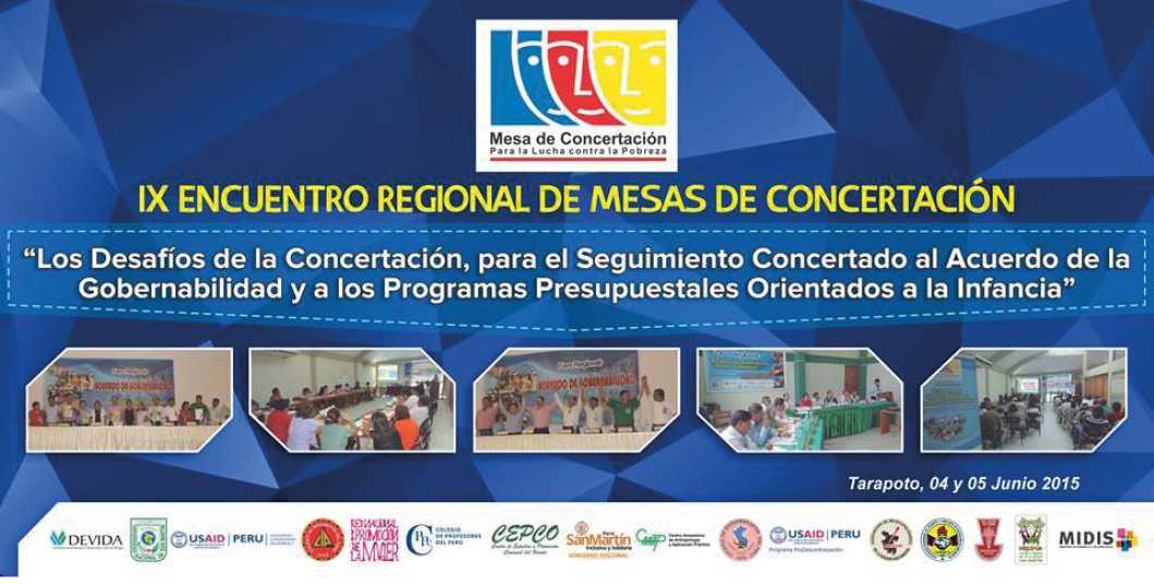 Tarapoto, será sede del encuentro regional, Los desafíos de la concertación, para el seguimiento concertado al Acuerdo de Gobernabilidad y a los programas presupuestales orientados a la infancia, las fechas 04 y 05 de junio 2015.