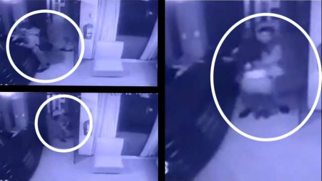Pese a que se le caía de los brazos, él siguió intentando cargarla. Luego de pagar por la habitación en recepción, él carga a la mujer y la intenta llevarla a la habitación, pese a que ella se sostenía de la puerta.