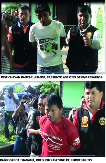 Los detenidos fueron identificados como, PABLO SHICA TUANAMA (27), natural del distrito de Morales, de ocupación agricultor, con residencia actual en el caserío Independencia (Yurimaguas), y JOSÉ CHAYAN PAUCAR HUANSI (23), natural de esta ciudad, de ocupación agricultor, quienes fueron aprehendidos, el domingo 23 de agosto en el caserío Independencia, tras obtener la orden de captura otorgada por el juez de investigación Preparatoria de Alto Amazonas, Quique Rodríguez, mediante Resolución Nº 01 de fecha 21 de agosto, solicitada por el fiscal penal Alcides Estela Fernández, encargado de las investigaciones.