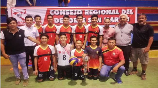 La delegación de Tarapoto está conformada por 12 personas; Paco Junior Córdova Fasanando (armador), Axel Gabriel Shahuano Flores (defensa), Ryan Smith Torres Paima (ataque), Renato Aldair Parreño Aldave (refuerzo del Colegio Junior del Callao-central), Fernando Lavi Cisneros (refuerzo del Colegio Serafín Filomeno de Moyobamba-ataque 4-6), Lanner Rosello Rubio Medina (ataque), Alex Lozada Bernales (central), Jaret Calet Mendoza Medoza (opuesto punta), Yasser Eduardo Ramírez Taspayuri (libero), Luis Alejandro Cachique Cubas (central). Profesor Luis Ángel del Águila Flores (entrenador) y Bilha Rody Amacifuen García (delegada).