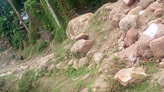 Refieren que hace tres semanas, vino un tractor de la municipalidad a reparar la calle pero dejó el trabajo a medio hacer, y no sacó las enormes piedras que cierran la calle.