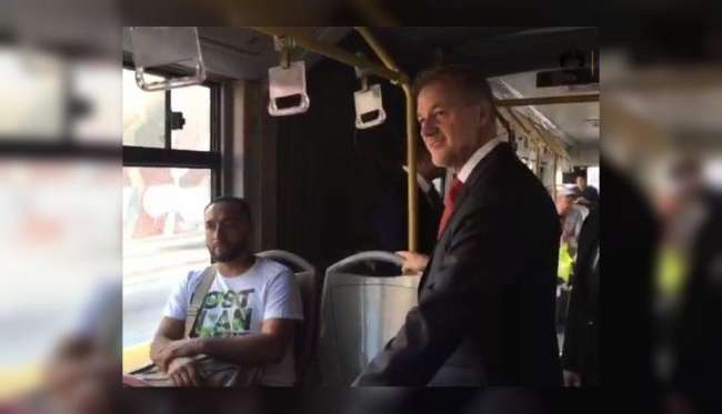 El flamante alcalde de Lima, Jorge Muñoz, se embarcó en uno de los buses del Metropolitano para llegar hasta el Circuito Mágico del Agua, en el Cercado, donde este miércoles jurará como nuevo burgomaestre de la capital.