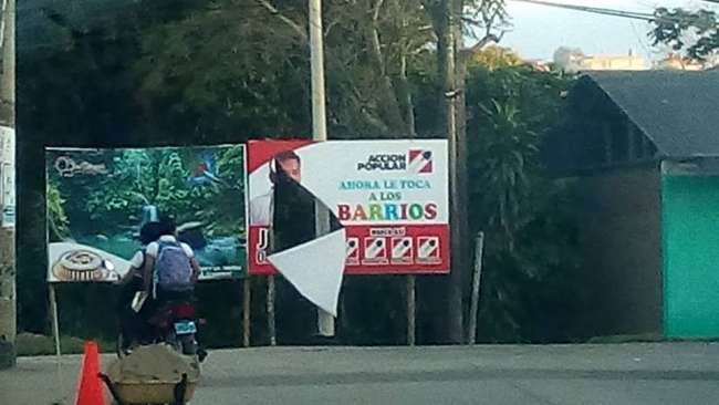 Tal como sucedió con el candidato Hildebrando García de Fuerza Comunal, a José del Aguila también le destrozaron un panel ubicado en una esquina estratégica del centro de La Banda de Shilcayo.
