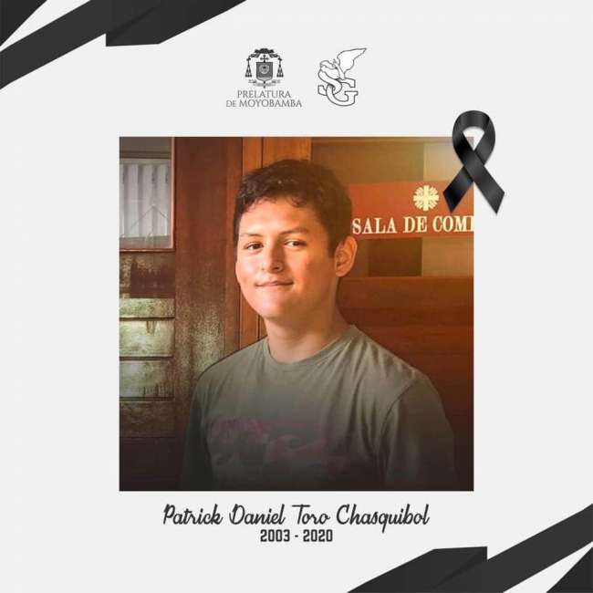 Enterados de su deceso la Prelatura de Moyobamba, Canal Católico San Gabriel y Young Caritas Moyobamba, expresaron sus condolencias a la familia Toro Chasquibol por el fallecimiento de su hijo Patrick Daniel.
