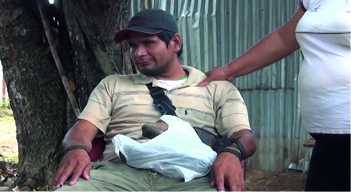 Un joven identificado como Dayton Torres Grández de 35 años de edad, sufre de transtornos mentales y por su agresividad mantiene atemorizada a su familia, quienes buscaron apoyo ante las integrantes del comité de damas Manos Unidas para recluirlo en un centro de reahbilitación, ya que no todo el tiempo lo pueden mantener amarrado.