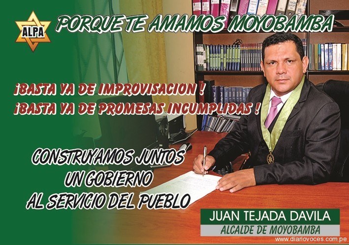 En el año 2006 se gestó un movimiento de participación ciudadana al que se denominó Alianza Popular Amazónica – ALPA, y desde esta perspectiva se ha gestado una propuesta de gobierno local que viene difundiéndose y socializándose a nivel provincial bajo el liderazgo del candidato a la Municipalidad Provincial de Moyobamba, Juan Tejada Dávila; “estamos incluso compartiendo nuestros puntos de vista con otras agrupaciones políticas, líderes sociales y vecinos comprometidos con el desarrollo de los pueblos que conforman nuestra provincia y construir una alianza político electoral invencible y que esté al servicio del pueblo”, indican los dirigentes.