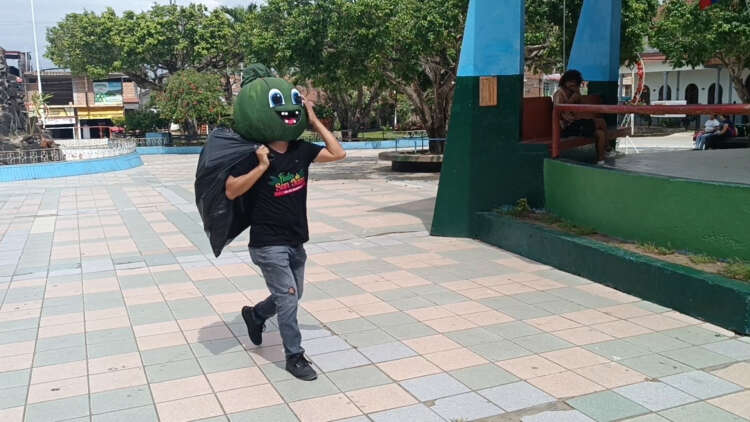 El personaje recorre las calles de Morales y busca fomentar la participación de la comunidad en acciones de reforestación.