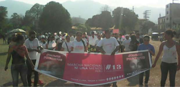 Participaron diversas Instituciones de la Provincia de Mariscal Cáceres activamente a la marcha el día sábado 13 de agosto del 2016 en horas de la tarde, se reunieron en la Concha Acústica dando inicio su recorrido por las diversas calles de nuestra ciudad luciendo polos blancos, globos rosados y pancartas, buscando sensibilizar a la población, cuenta la historia de un joven de 13 años (Wei Minzhi) que se hizo cargo de una pequeña escuela rural, mientras el maestro oficial se ausentaba durante un mes, para cuidar a su madre enferma, para recibir su salario la condición es que al regreso del maestro ningún niño haya abandonado la escuela, la película muestra el analfabetismo y la pobreza rural de manera Neorrealista y documental, muestra las grandes diferencia económicas y culturales de la china actual, la película fue dirigida por ZHANG YIMOU – 1999, Hoy se resalta con el trabajo que todos debemos asumir respetando la dignidad de la mujer.