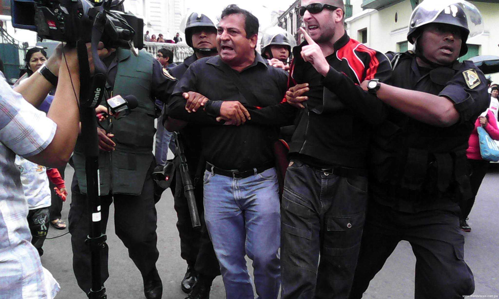 La protesta también se traladó al frontis del Congreso, donde se encadenaron, fue cuando la policía los detuvo y fueron llevados a Seguridad de Estado, al no comprender el motivo de su protesta; luego de las indagaciones fueron liberados.