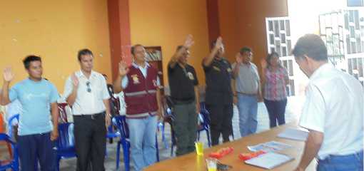 En las instalaciones de la municipalidad del Pongo del Caynarachi, ayer por la mañana el alcalde distrital profesor Darwin Reátegui Aguilar, juramentó al Comité de Seguridad Ciudadana integrada por las autoridades del lugar entre ellos el gobernador Eduardo Grández López, el comisario Cristian Rivas Coica, el fiscal adjunto, rondas campesinas y juntas vecinales quienes saludaron la iniciativa del burgomaestre por preocuparse por el tema de la inseguridad en esta parte de la región San Martín, porque en estos días el accionar de la delincuencia se ha incrementado pero gracias a estas organizaciones e instituciones se tratará de erradicarla.