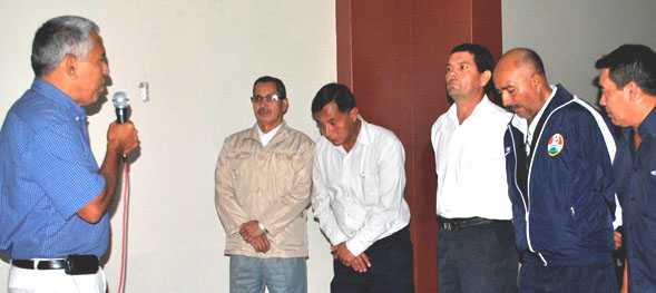 Moyobamba. En una importante reunión de autoridades realizada en Moyobamba, el vicepresidente regional de San Martín, Rotland Reátegui Alegría, juramentó al Comité de Apoyo Pro Construcción de las Tribunas del Estadio de Moyobamba; la reunión fue convocada por el director regional del Consejo Regional del Deporte, Prof. Wilson Reátegui Inuma.