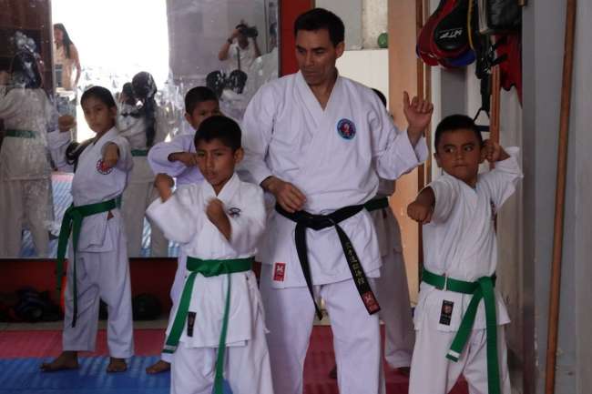 Es así que el sábado en horarios de mañana, y tarde y noche se ha involucrado en la enseñanza de las técnicas del karate, con niños que van desde el cinturón verde. El sensei Andrés Arévalo, peruano nacionalizado estadounidense, dijo: “Creo que, con mucho esfuerzo en los entrenamientos en las modalidades de kata, kumite y defensa personal le permitirá a cada deportista cumplir su sueño. Gracias a su ímpetu” señaló.