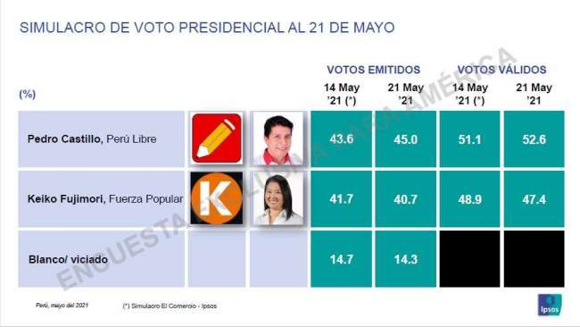 “En el Perú todo puede pasar, hemos visto movimientos sobre todo en la primera vuelta, donde estas cosas suceden, no descartaría que haya más movimientos, creo que en el equipo técnico Castillo le ha sacado una ventaja a Keiko al presentar un equipo más fresco y nuevo. En cambio, el equipo de Keiko no es tanto así. Las posiciones están exacerbadas, los debates se han convertido en una especie de plebiscito popular, donde las personas van a reforzar sus votos, salvo que ocurran cosas dramáticas”, dijo.