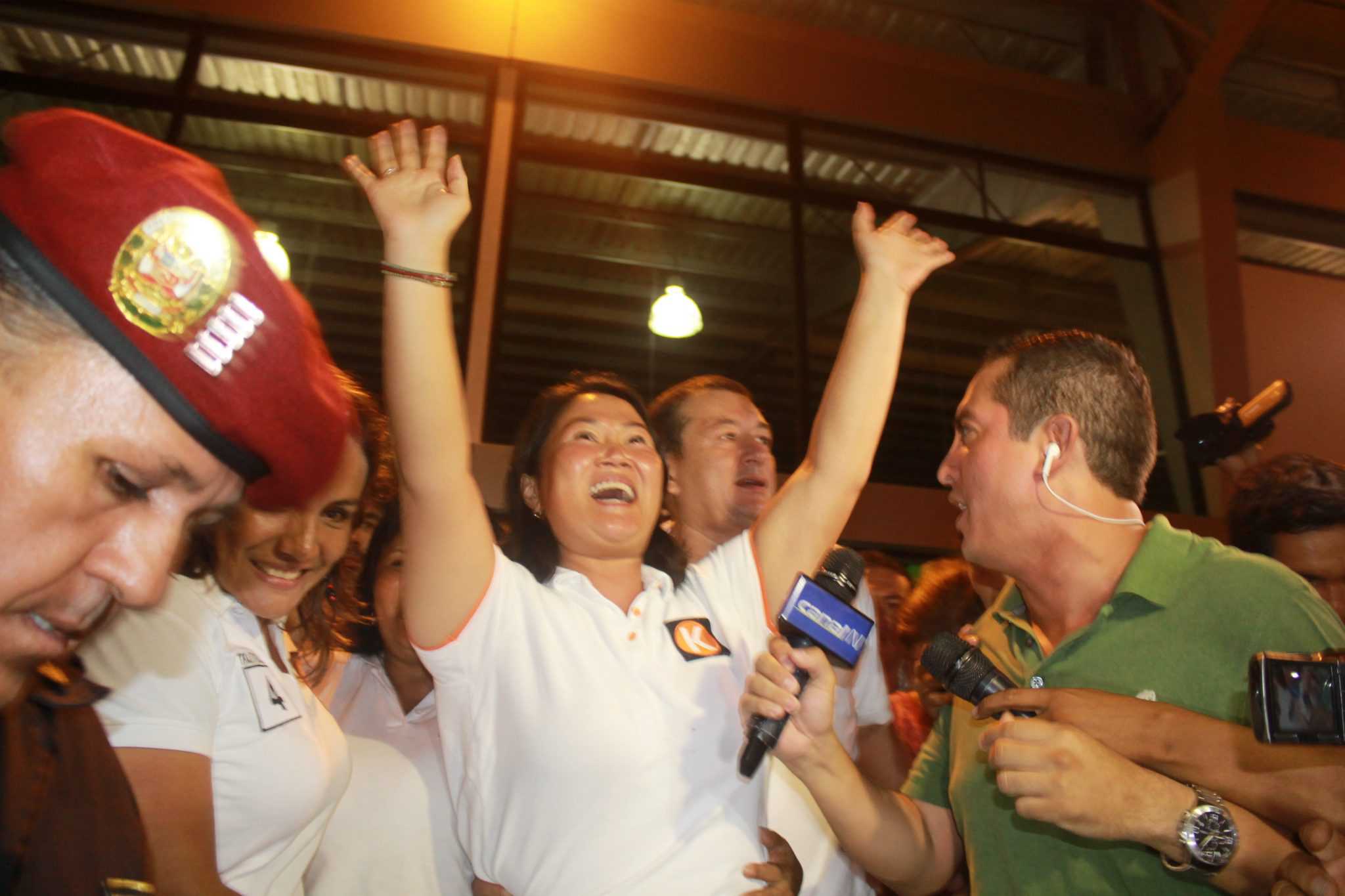 Fujimori Higushi, llegó al aeropuerto de Tarapoto a las 9 de la noche, luego de un maratónico día, donde realizó tres mítines.