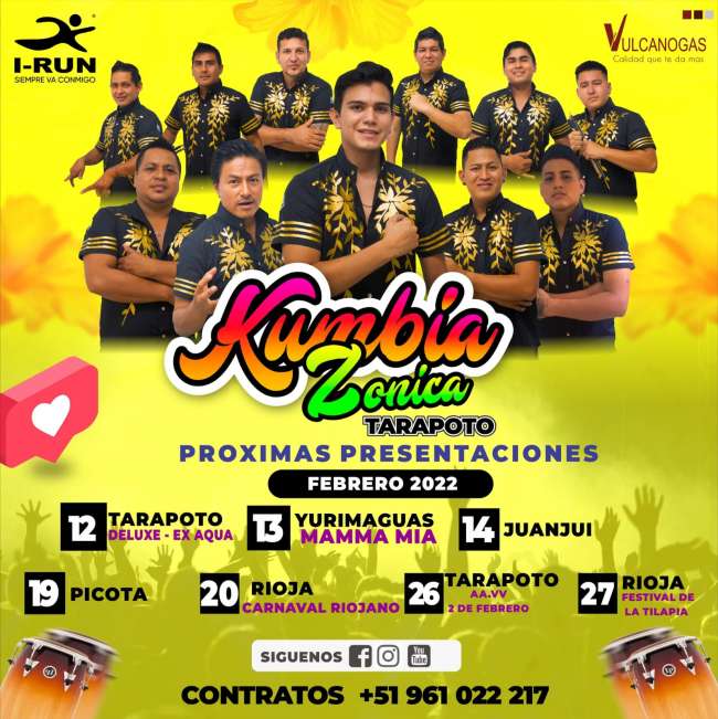 A pesar que tener un mes, ya vienen realizando presentaciones con llenos totales y Kumbia zonica, será la agrupación que cerrará el Carnaval Riojano la fiesta más grande del departamento de San Martín.