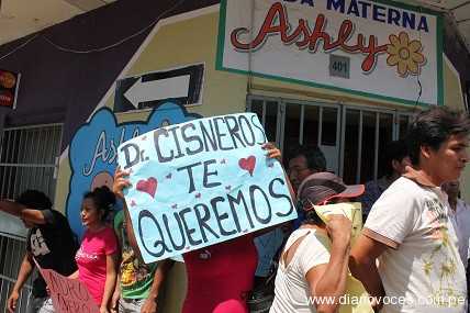 Cerca de un centenar de personas fueron llevadas para apoyar al notario Cisneros Olano, con carteles insultando a periodistas, congresistas, incluso a políticos locales.