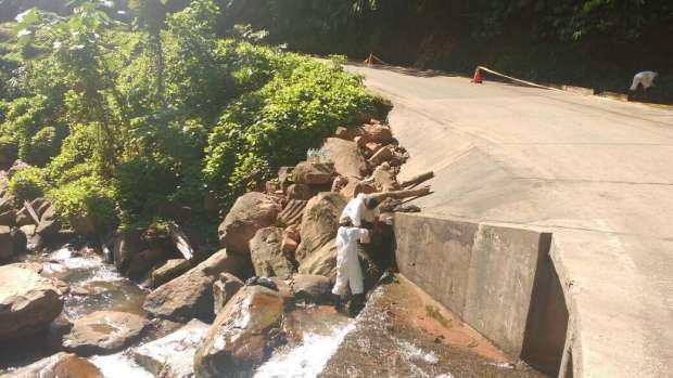 Transportes PENTA SRL, informa que continúan las labores de limpieza y remediación ambiental en el Km 44 de la carretera Tarapoto – Yurimaguas, donde se produjo la volcadura de uno de sus vehículos cisterna el pasado 13 de abril.