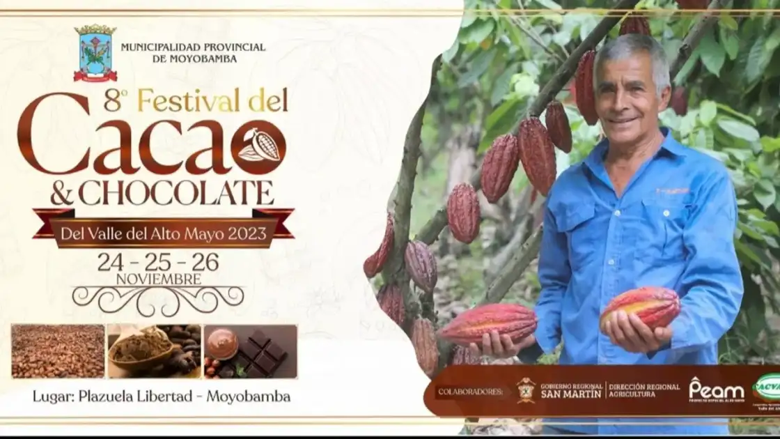 Del viernes 24 al domingo 26 de noviembre la ciudad de Moyobamba será sede del VIII Festival del Cacao y Chocolate del Valle del Alto Mayo 2023, que tiene como finalidad incentivar el consumo interno de este producto bandera de la región San Martín.