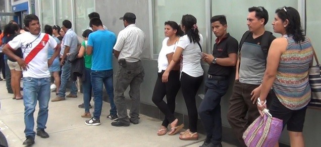 Moyobamba. Largas colas se formaron en la agencia principal de las entidades financieras instaladas en la ciudad de Moyobamba, los clientes tuvieron que esperar varias horas en la parte exterior formando colas.