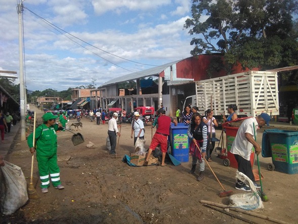 Moyobamba. Debido a la acumulación de basura generada por fiestas de fin de año, la Municipalidad Provincial de Moyobamba a través de la Gerencia de Desarrollo Económico y la Gerencia de Medio Ambiente desarrollaron la mañana de ayer miércoles una jornada de recojo de inservibles en las calles adyacentes al mercado central.