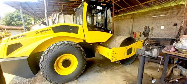 La primera máquina que llegó a Tarapoto, es un Rodillo Compactador Liso de marca Bomac, fabricación alemana, serie BW211-D5. Año de fabricación 2021. Capacidad de trabajo 12 TN. Potencia máxima 140 HP.