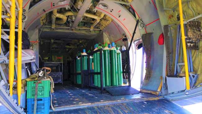 En tres días ya se ha logrado trasladar 358 balones vía área, el día miércoles se trajo 118 balones, el jueves 80 y hoy viernes 160.