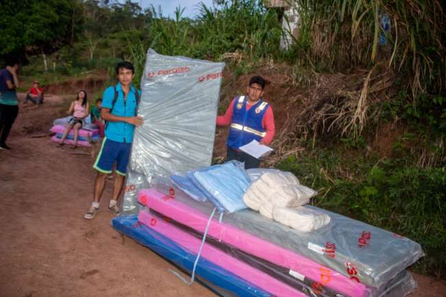 La ayuda consistió entregar calaminas, colchones, frazadas, plásticos y diversos utensilios, sin embargo, tienen que ser reubicados, por el hundimiento continúa y continuar en la localidad de Milenio sería un riesgo inminente, ya que la situación podría empeorar.