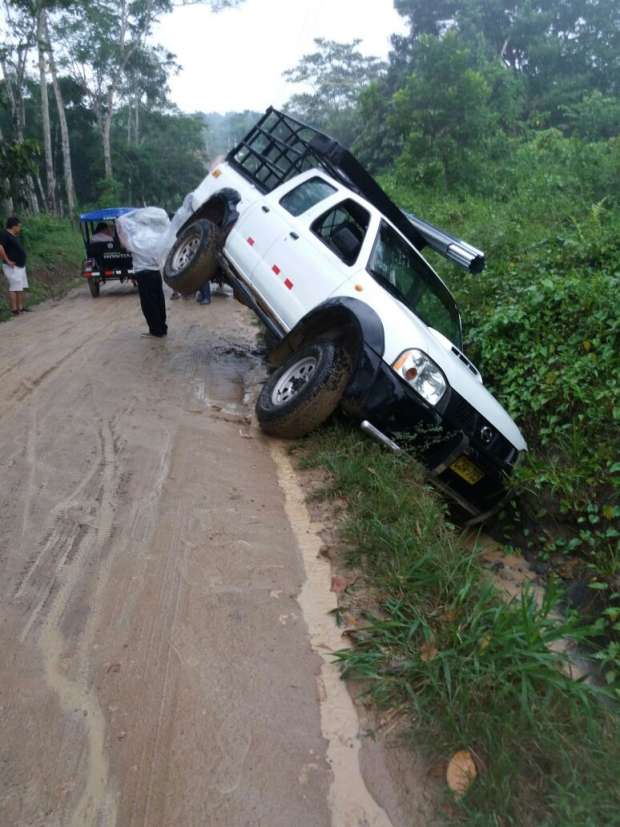 La carretera que une puerto López con el distrito de Sauce también quedó en mal estado debido a la falta de mantenimiento, ocasionando que una camioneta se despistara sin reportase personas heridas, pero los pasajeros se llevaron un gran susto, es por ello que los transportistas solicitan a las autoridades rehabilitarlo cuanto antes, por ser una de las zonas turísticas más importantes de la región San Martín. (Hugo Anteparra)