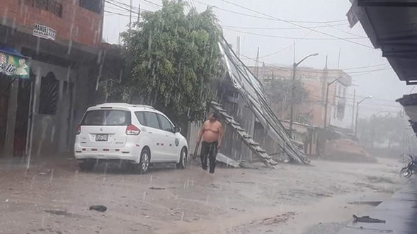 Moyobamba. Lluvia con granizo y fuerte ventarrón registrada la tarde de ayer lunes afectó el techo de más 50 viviendas, los sectores más afectados fueron Indañe, 2 de Junio y Azungue. Alfredo Gonzales Sandoval, secretario técnico de Defensa Civil de la MPM se hizo presente en las zonas donde ocurrieron los desastres y pudo corroborar los daños materiales generados por el cambio climático que en algunas viviendas hizo volar las calaminas por más de 30 metros. Por suerte, solo se tuvo daños materiales que al cierre de esta nota ya venían siendo recogidos los escombros por las familias afectadas con el apoyo de la MPM.