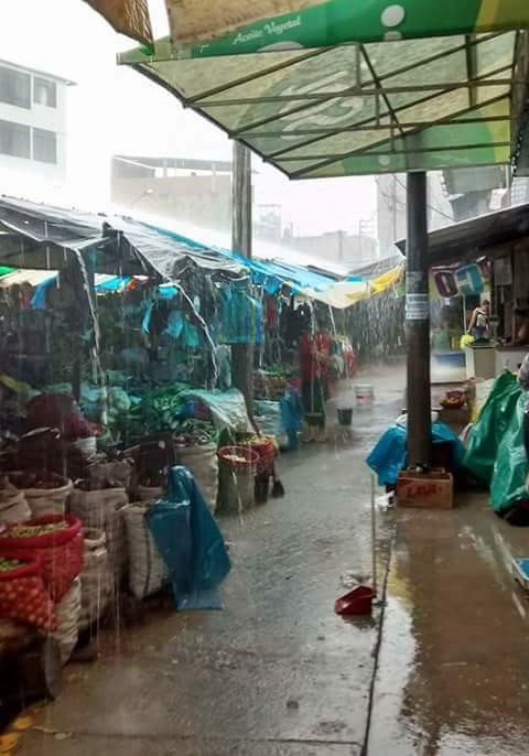 Moyobamba. Cada vez que se registra una fuerte lluvia los comerciantes del mercado central de Moyobamba se ven afectados, ello volvió a ocurrir ayer viernes luego de la caida una intensa lluvia, originando el agua ingrese e inunde pasillos y puestos de venta llegando a malograr varios productos.