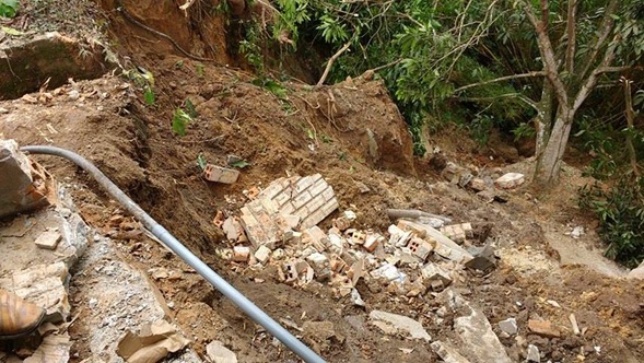 Moyobamba. A consecuencia de las últimas lluvias caídas en la ciudad de Moyobamba la parte posterior del terreno del terminal Terrestre, sufrió el deslizamiento de tierra que ha llegado a afectar a uno de los almacenes que existía en esta zona.